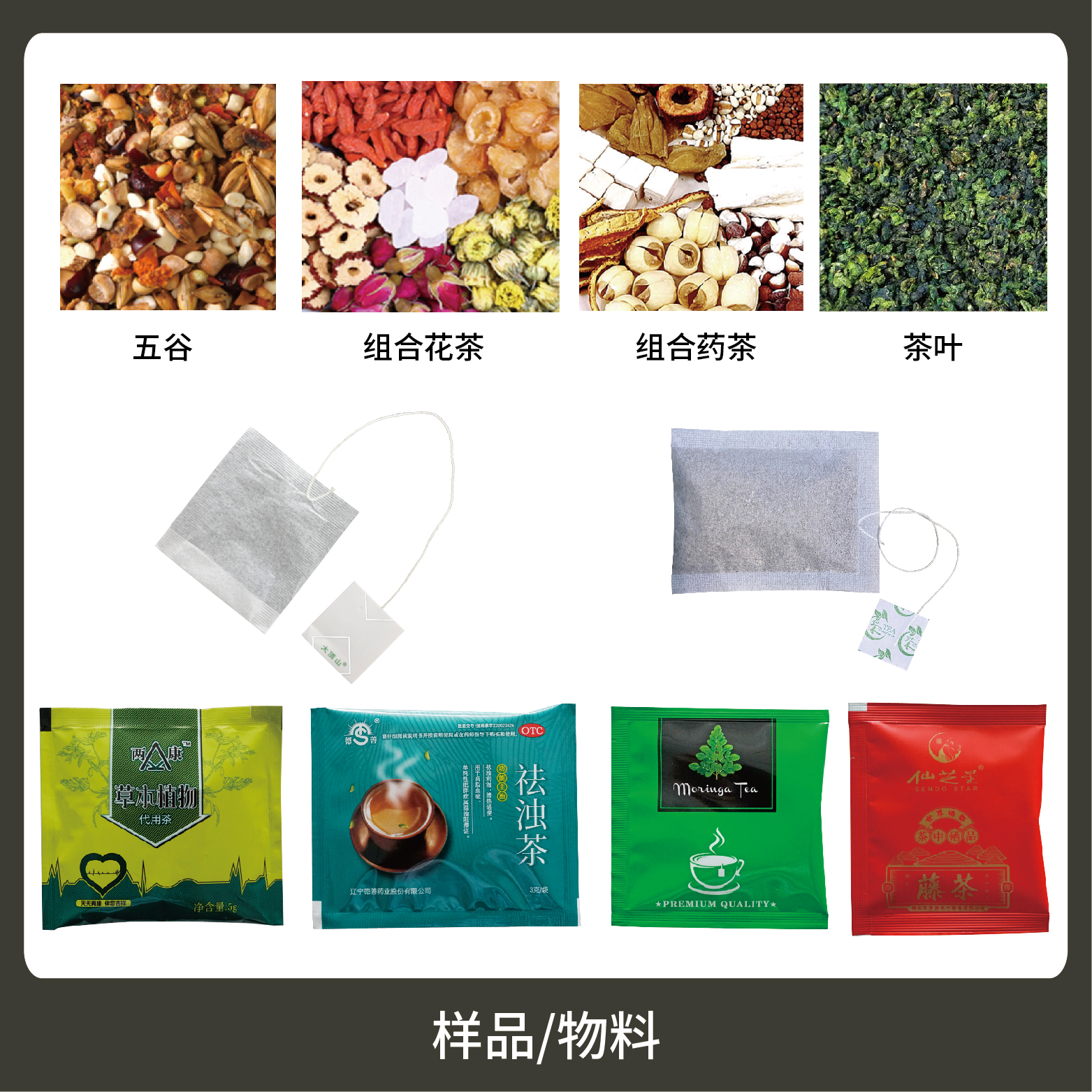 5、包裝材料:茶葉濾紙、棉線、復(fù)合膜及標(biāo)簽。